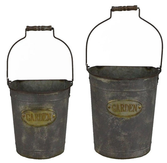 KE2038-LARGE 10.5-12.5"H Wall Planters W/Handle Grey/Silver/Bronze