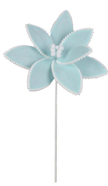 XS399514 12.25"Dia Felt Poinsettia On 19.5"L Stem Light Blue