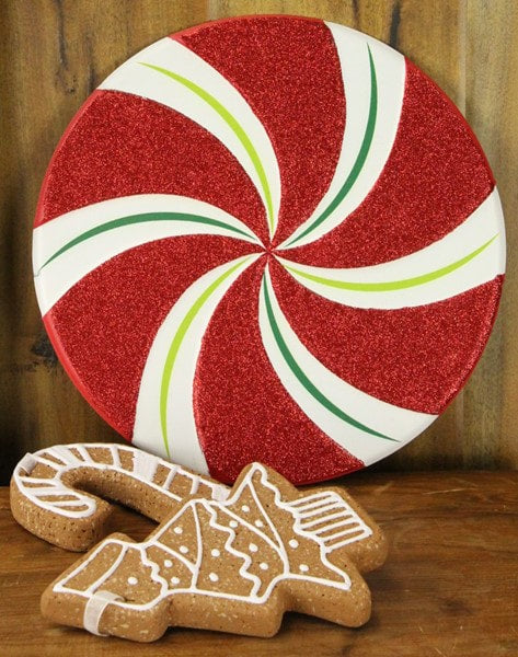 MD0734 12"Dia Metal/Embd Glitter Peppermint Red/White