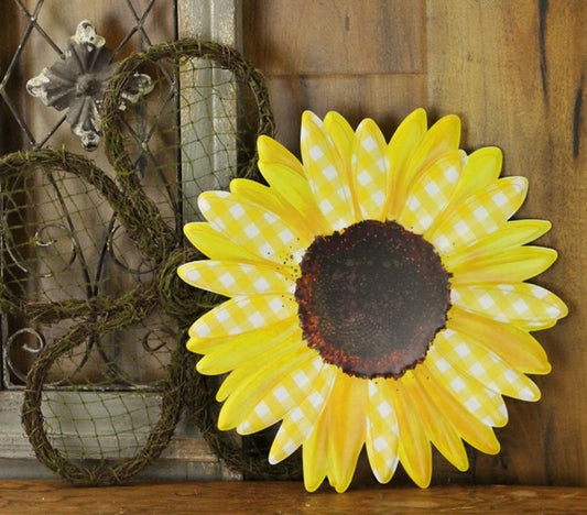 MD078429 12"Dia Yellow Metal/Embd Sunflower Yellow/Dk Brown