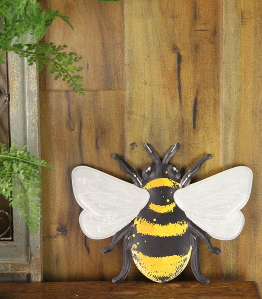 MD0613 12"L X 9.25"H Metal Embossed Bee Black/Yellow