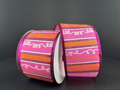 564244044 2.5"x10Y Loopy Stripes Org/Fush/Wht/Blk