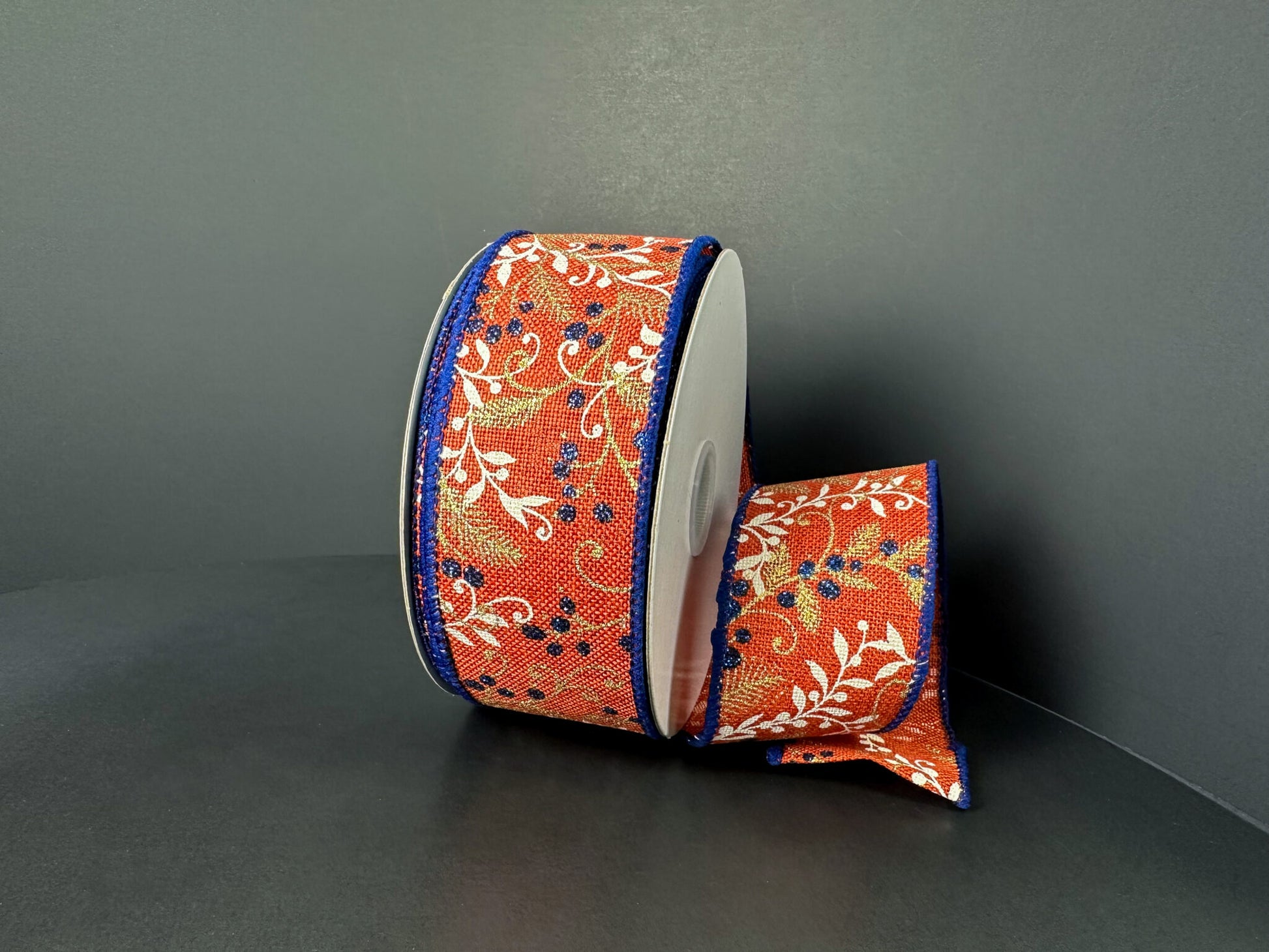 615020931 1.5"x10YDS Rust :om/Ivy Gold Vines Navy Glitter Berries
