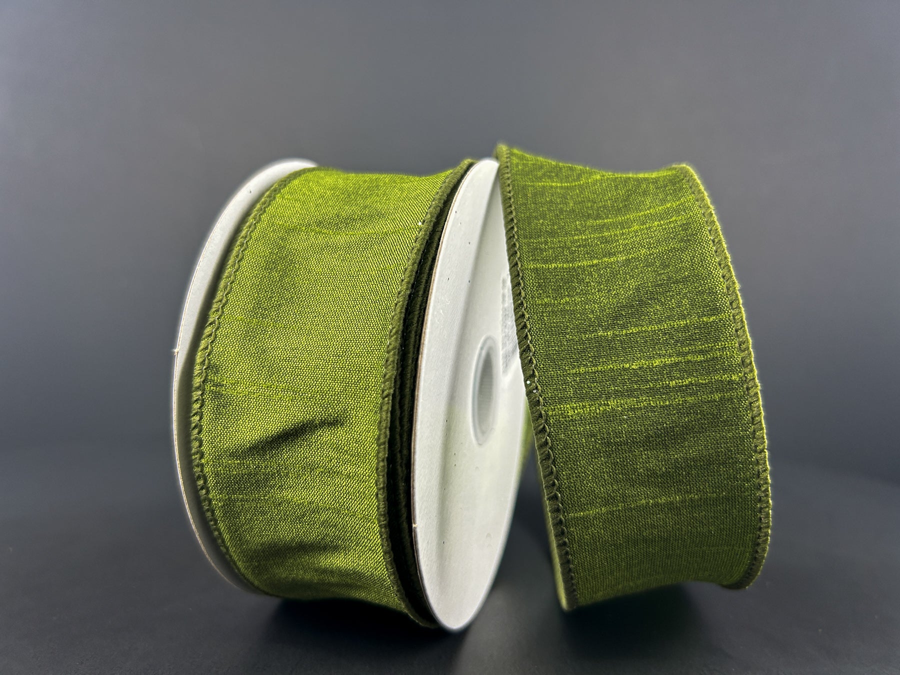 72434-09-08: MOSS GRN FAUX DUPIONI, 1.5"X10Y