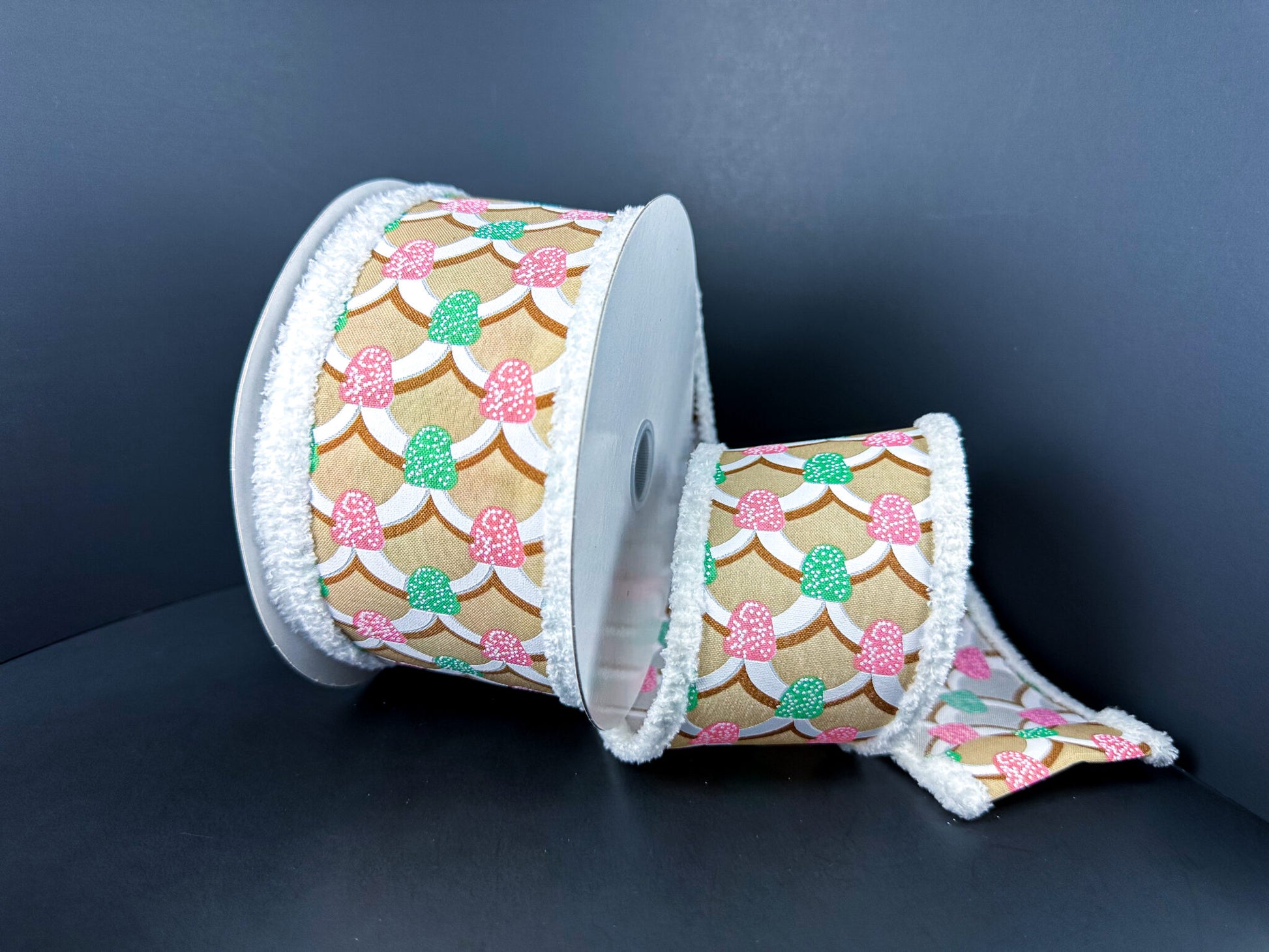 725134006 2.5"X10YDS Gingerbread Roof Red/Grn/ Gumdrops Wht/Fuzz Edge