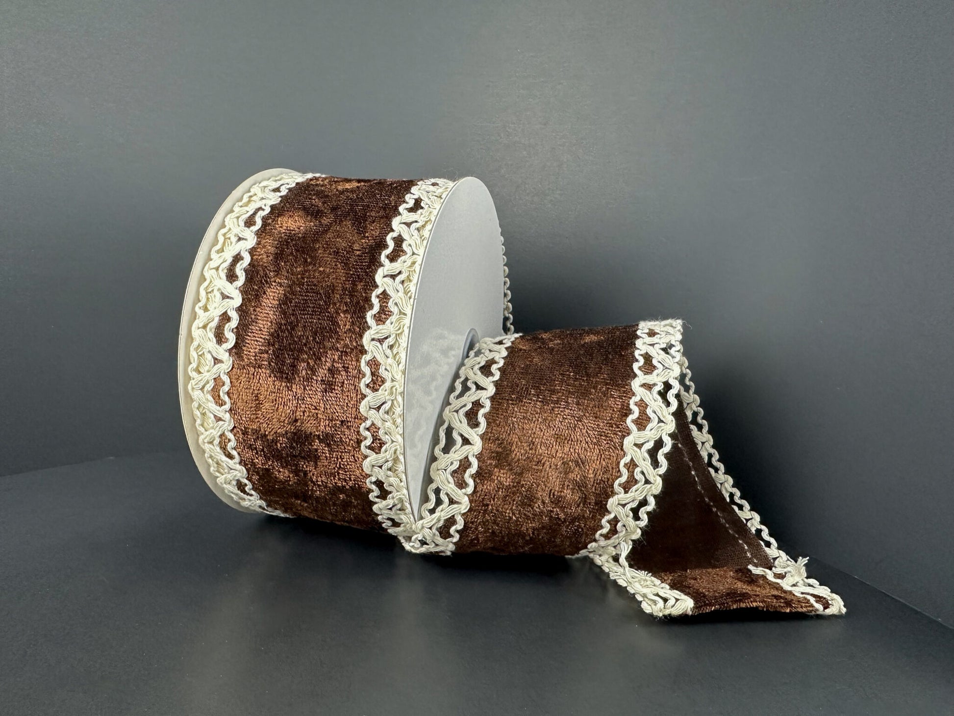 735634038 2.5"X10YDS Velvet Scalloped Edge Brwn/Ivry