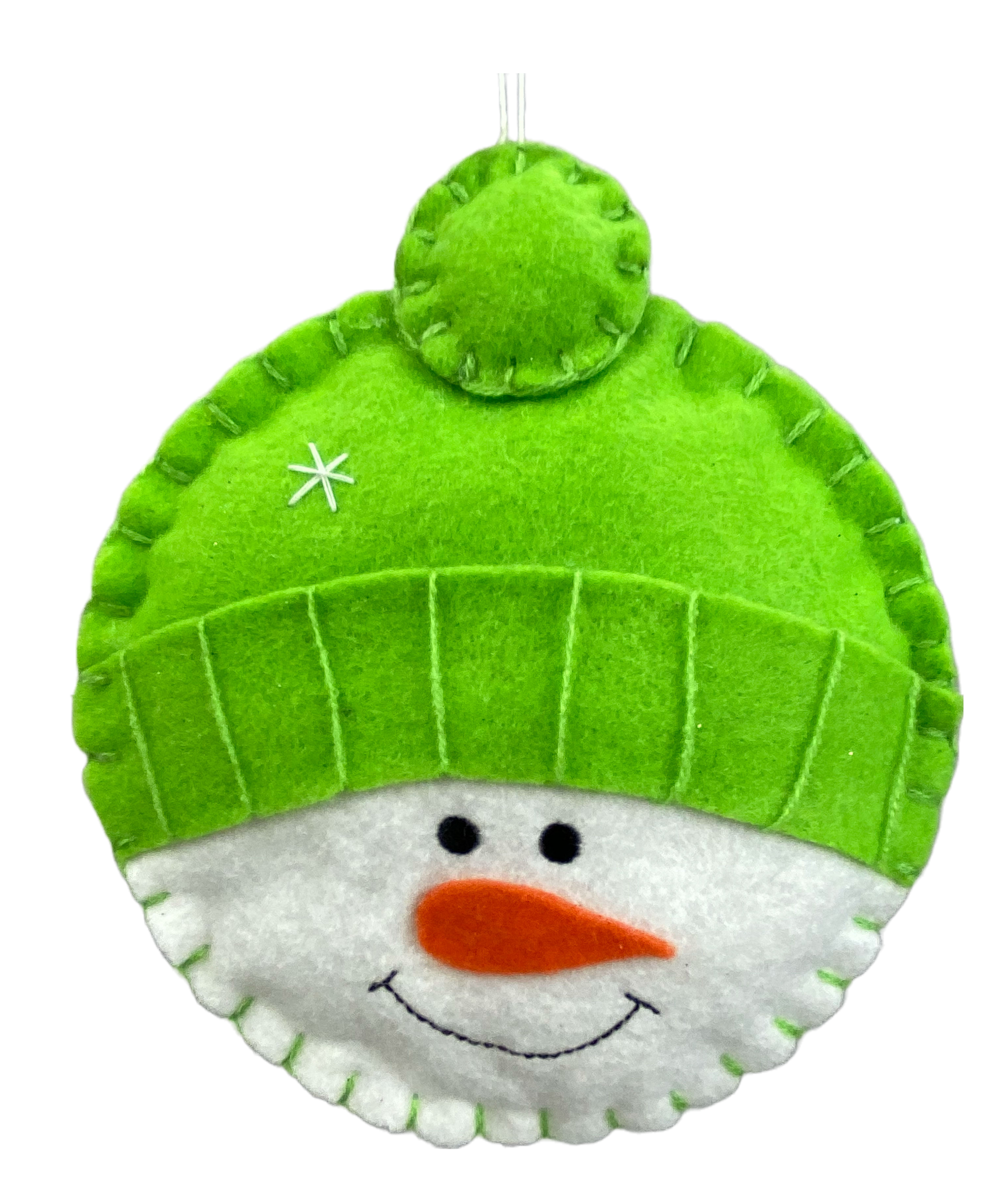 85707GN 6"DIA Plush Snowman Head Ornament Green
