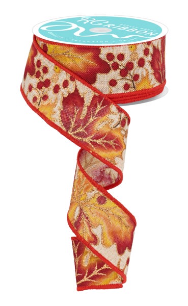 RGF1276 1.5" x 10yd Leaves W/Berries Ylw/Orng/Burg/Gold