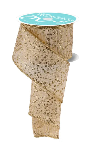 ✨ 2.5" x 10yd Mini Glitter Dots/Metallic Ribbon – Gold ✨