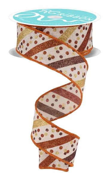 RGH10003R 1.5" x 10yd Glitter Stripe W/Confetti Dots Cream/Gold/Brown/Copper