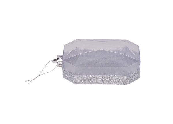 XJ563726 6.25"L x 4.25"W Glitter Rect Gem Orn Silver