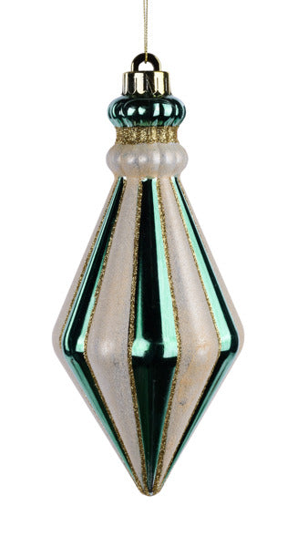 XJ7111NA 8.5"L x 4"Dia Stripe Teardrop Orn Sage Green/Cream/Gold