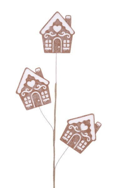 XP0185 30"H Glitter/Felt Gingerbread Spray White/Tan