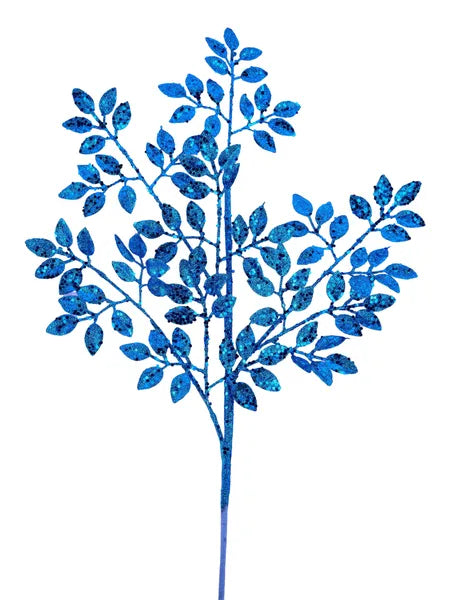 XS226825 28"L Glitter Leaf Spray Royal Blue