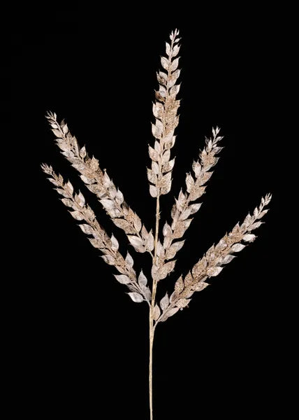 Bring refined sparkle and elegant texture to your décor with this Glitter/Metallic Mini Leaf Spray! Featuring clusters of petite champagne-toned leaves with a shimmering metallic and glittered finish, this luxe spray adds height, shine, and sophisticated movement to wreaths, garlands, centerpieces, Christmas trees, and upscale floral designs.